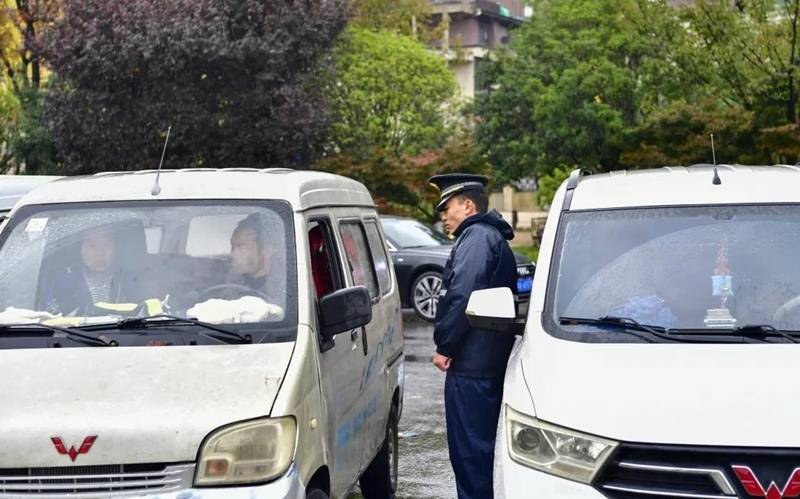 工作人员引导车辆规范停放。