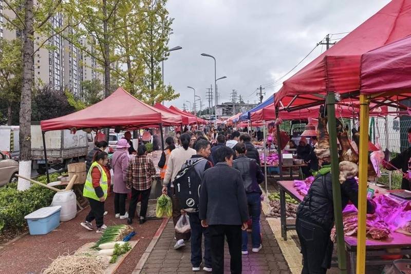 据介绍,自今年9月下旬以来,周边群众自发在该路段人行道摆摊设点,形成了一个临时的市集,每周一和周四在此赶集。赶集时,经营户占人行道经营,市民将车辆停放在车行道上,影响人车通行,存在极大的安全隐患。